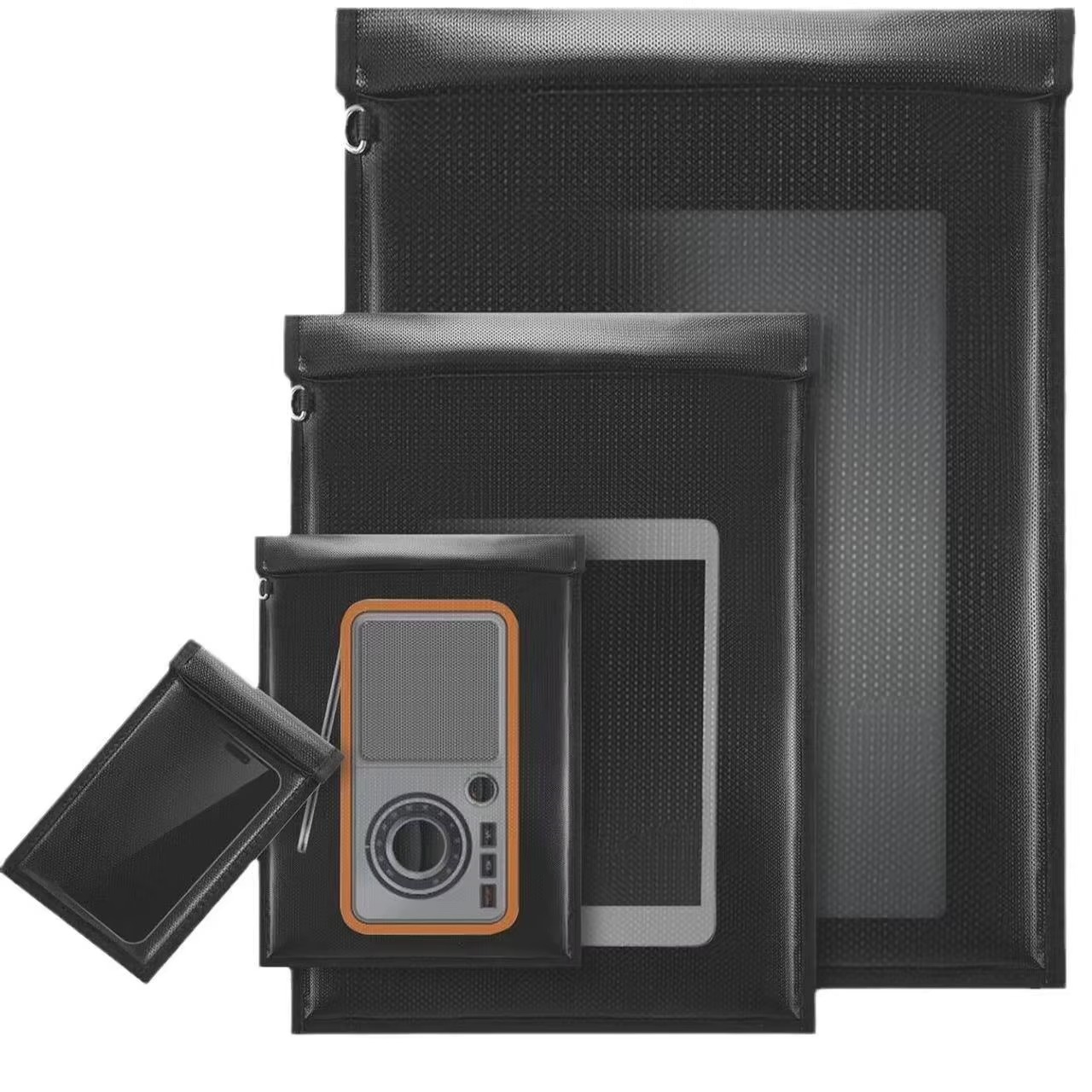 Water-repellent Faraday Bags provide anti-tracking, anti-hacking, and water-repellent protection for laptops, tablets, phones, and car keys. Made from high-quality fiberglass material. This ensures durability and reliability across all seasons.